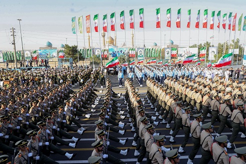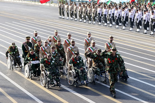 در ادامه یگان های موتوری، ارتش و سپاه از مقابل جایگاه رژه رفته و انواع تجهیزات نیروهای مسلح کشورمان از جمله تانکها، نفربرهای، توپ ها، پهپادها، موشک ها، سیستم های راداری را به نمایش گذاشتند. موشک نقطه زن جهاد و پهپاد شاهد ۱۳۶B برای اولین بار در این مراسم به نمایش درآمد.