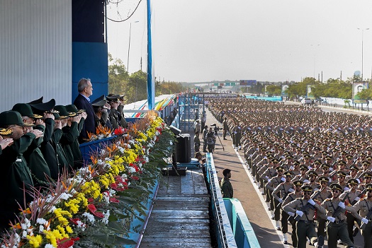 به گزارش عصرپرس، در این مراسم پس از سخنرانی رییس جمهور، یگانهای نمونه ارتش از جمله تیپ ۶۵ نوهد، دانشجویان مرکز آموزش جواد الائمه (ع)، دانشجویان دانشگاه خاتمالانبیاء پدافند آجا، دانشجویان دانشگاه علوم و فنون شهید ستاری، دانشجویان علوم و فنون نیروی دریایی از مقابل جایگاه رژه رفتند. سپس یگانهای نمونه سپاه اعم از یگانهای نیروی زمینی، هوافضا و نیروی دریایی سپاه، نیروی فرماندهی انتظامی جمهوری اسلامی ایران و بسیج و عشایر از مقابل جایگاه رژه رفتند.